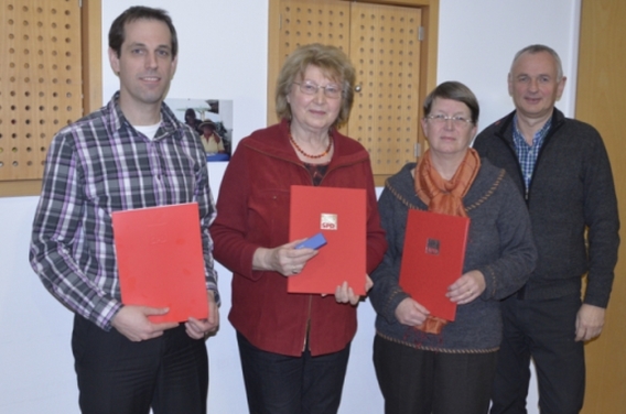 Vor den anschließenden Ehrungen für langjährige SPD Mitgliedschaft erinnerte Uwe Achilles an herausragende politische Ereignisse aus den Jahren 1990 und 2005, bevor er allen fünf zu Ehrenden herzlich dankte und den anwesenden Mitgliedern Irene Belzig und Irene Demuth für 25 Jahre und Ralph Deisenberger für 10 Jahre Mitgliedschaft die Urkunden und Anstecknadel überreichte.